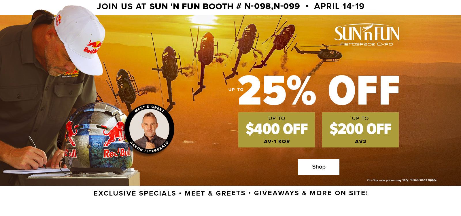 Our aviation helmet is constructed out of a PolyFusion Shell, utilizing a Koroyd® impact liner and an AirFlow Comfort Liner, making the AV-1 KOR the lightest aviation helmet on the market. It also features FireBlock trim, a fidlock buckle system, and is designed to fit a wide variety of communication units.