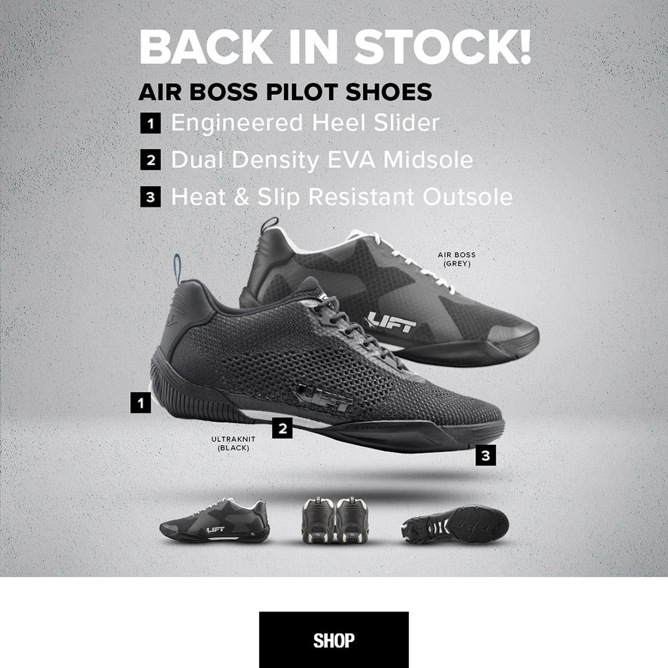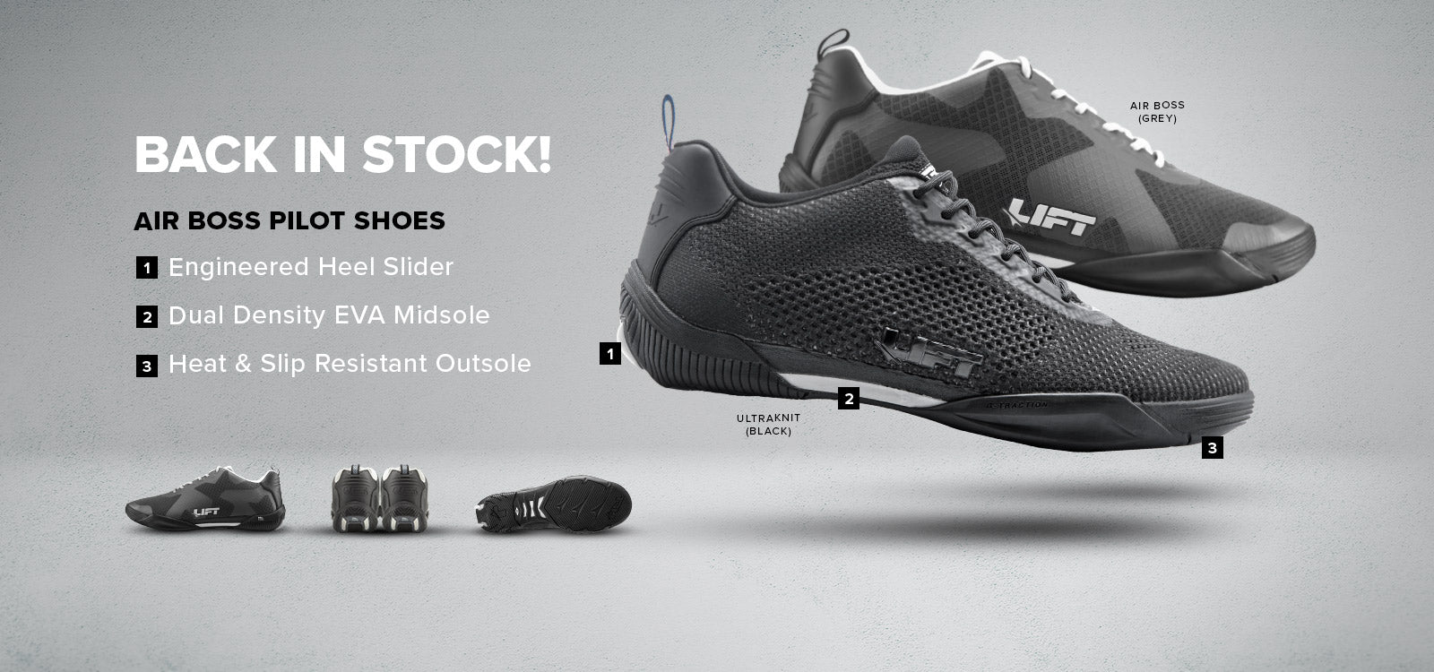 Our pilot shoes offer superior rudder control for an enhanced flight. They feature a unique patent pending Rudder Control Heel Slider, which is an injection molded frictionless cleat that slides effortlessly along the floorboards providing superior rudder control.